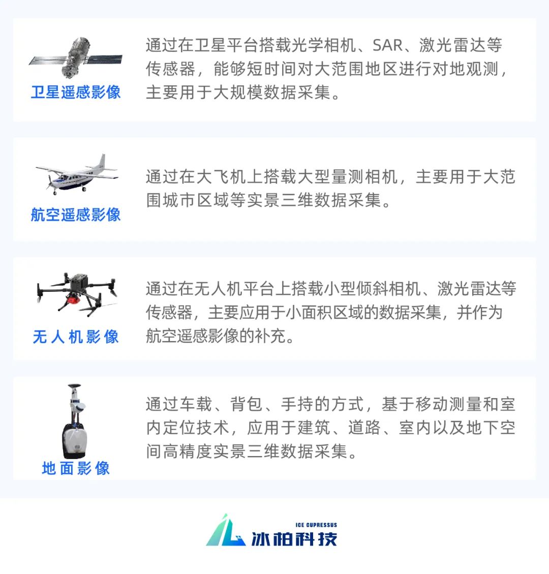影像是实景三维建设的重要基础数据,对于不同等级、不同应用场景的实景三维建设,需要通过不同的影像采集技术来获取影像。