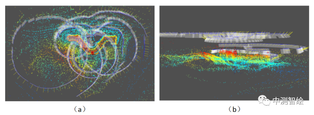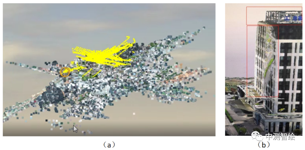 常规航飞空三与建模成果,(a)为空三成果,(b)为建模成果部分截图