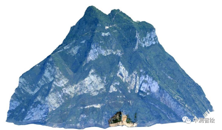 本次项目共采集影像367张,将环绕飞行的无人机影像数据直接导入Mirauge3D软件中,使用FastAT模式进行空三处理,空三结果如图5所示。整体空三点云没有丢片且很好的复现了建筑物与周围山体,且精度GSD为0.052m。在使用Mirauge3D软件进行三维模型重建,生成的精细实景三维模型如图6所示,这很好得证实了单镜头环绕飞行在较少了倾斜影像采集数量的同时也有效提高了三维模型侧边的精细化程度,可以将环绕飞行广泛得应用于建筑结构复杂、细节精度要求高的模型重建场景中。