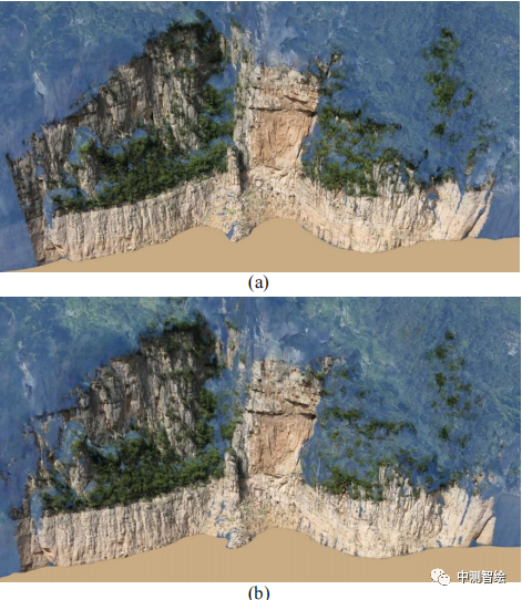 不同方法联合建模全局效果对比,(a)人工选择控制点方法,(b)空地数据联合方法