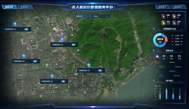 实现无人机机场、起降场、空域、通信、导航、监视、气象、情报等实施组网,打造空地信息一体化服务能力。