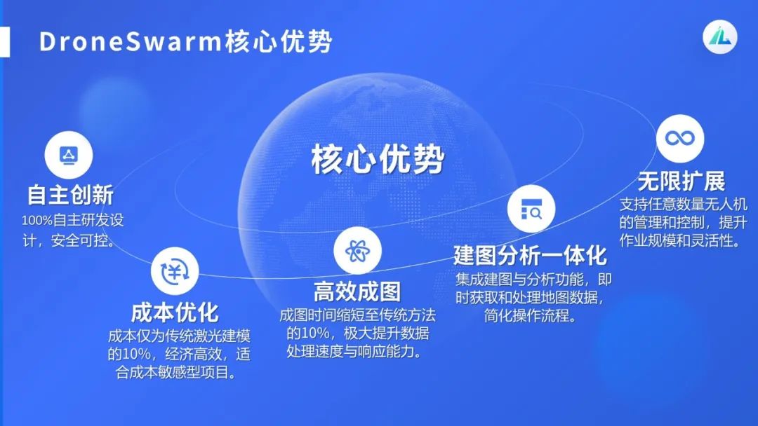 实现远距离、大面积地区的完全自主化影像数据采集,实现了异构无人机的综合调度规划,精确估算所需无人机的数量,高效分割任务区域,优化轨迹规划,并对作业时间进行精确预估。