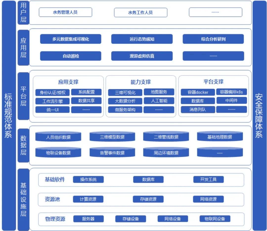 数字孪生平台可以通过建立真实的水厂工艺、设备和管网的数字化模型,实现对水厂运行情况的高度模拟和仿真。助力在建设阶段对水厂的工艺流程、设备配置等进行优化和调整,减少建设和运营成本。通过实时数据采集和模拟,对水厂生产过程进行动态监测和分析,发现潜在问题并进行预测。借助人工智能和大数据技术,提供对水厂运行的优化决策支持,提高生产效率和降低能耗。数字孪生水务平台是将现实世界中的水务系统通过数字孪生技术进行虚拟复制,从而在数字世界中构建一个与之相对应的虚拟模型。模型能够实时反映实际水务系统的状态,以便于进行分析、预测和优化。数字孪生水务平台的数据流程涵盖了数据采集、传输、预处理、存储、处理与分析、应用、共享与交互等多个环节,通过先进的信息技术手段,实现对水务系统中各个环节的实时监测和数据采集,为水务管理提供科学决策支持,提高水务管理的效率和准确性。通过智慧水务数字孪生平台,水务部门可以实时监测和分析供水系统、排水系统、水质情况等各个环节的数据,进行系统运行状态的实时跟踪,及时发现问题并进行预警,有效应对各种突发情况和问题。从而帮助水务部门实现智能化管理、提高管理效率。针对目前水厂建筑、生产设备、管网等数据各自独立,不便于水厂统筹管理和运营的痛点,平台提供了统一管理的功能。采取了室内激光点云、室外倾斜摄影实景三维、水厂环境与设备工艺手工模型相结合,具备多图层切换展示的能力。真实纹理与手工渲染: