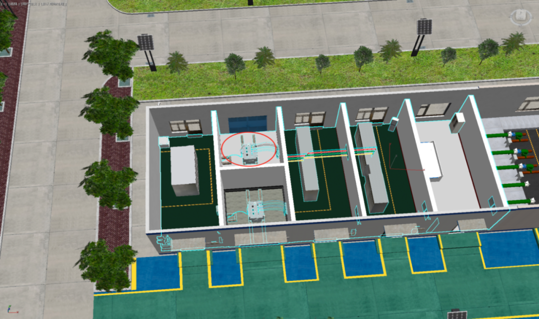 展示水厂的真实精细纹理,建筑物、设备、管网模型按照真实工艺流程构建,既具备真实展示效果,又具备现实逻辑的孪生映射条件。实景模型构建:
