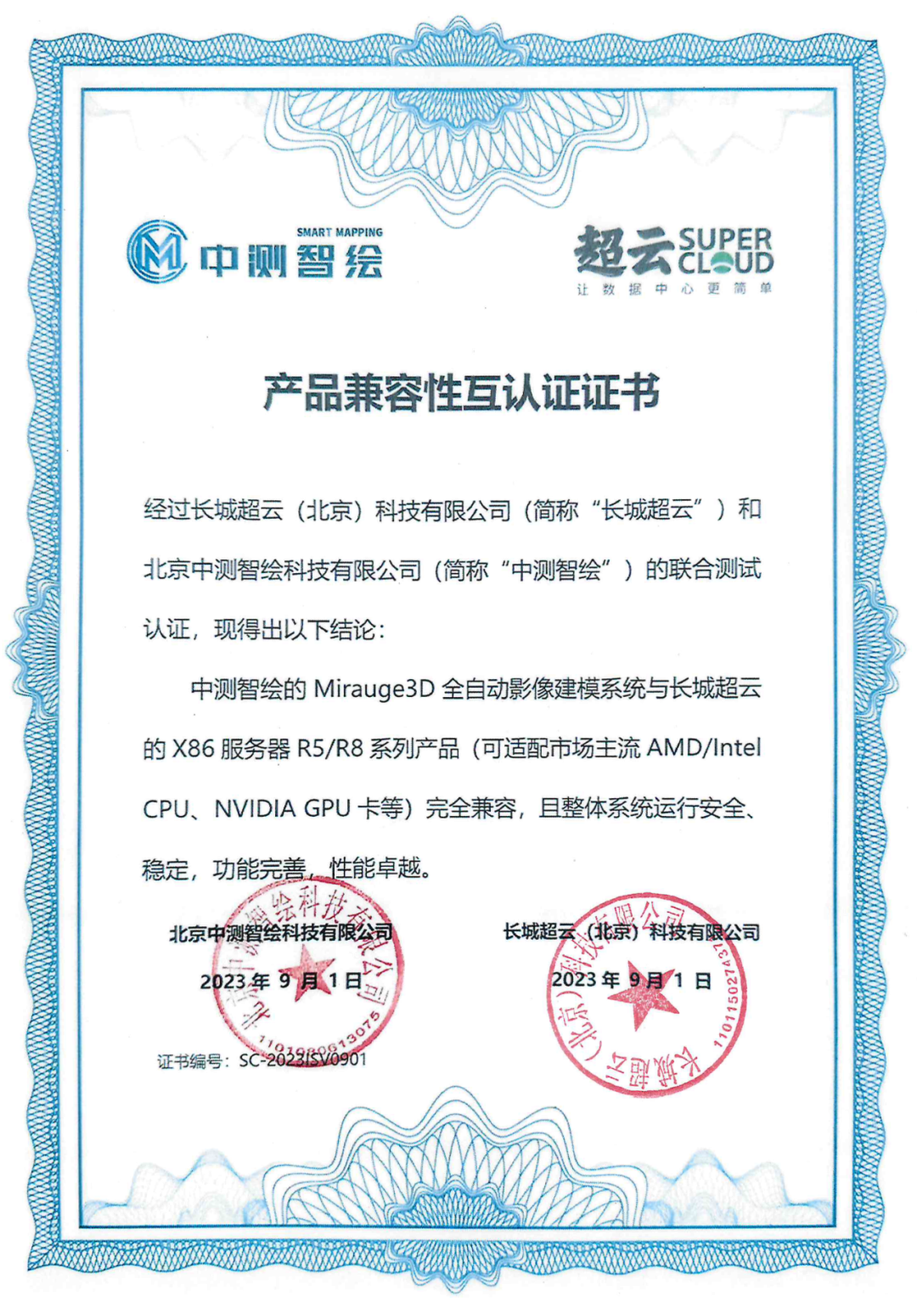 中测智绘与超云完成产品兼容性互认证