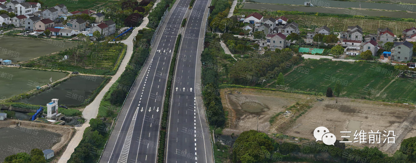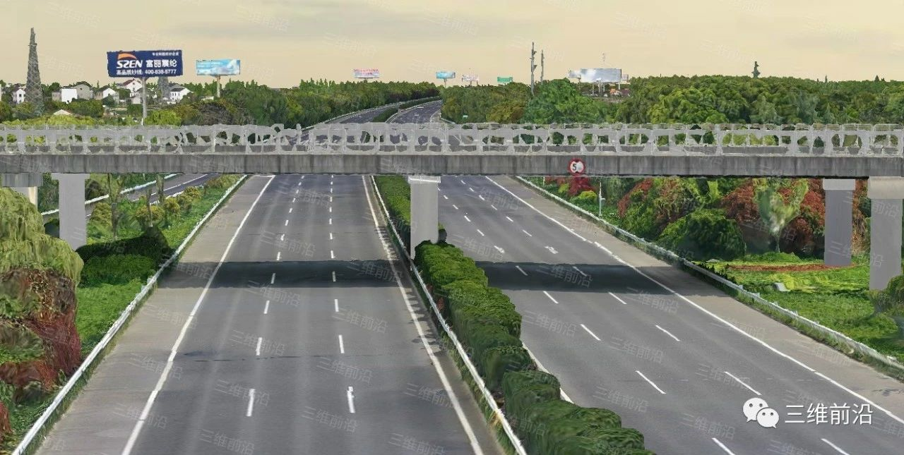 ③测区沿线所有路牌、电线塔、广告牌及众多停靠服务区的车辆(下图文字标示有误,左图为修后,右为修前)都需要删除并补面;