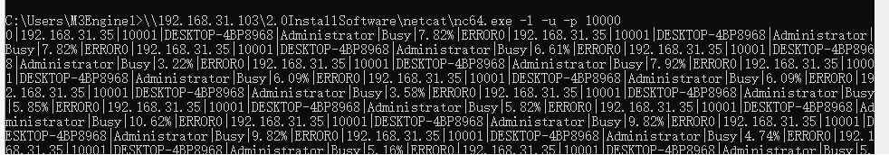 辅助测试程序(\\192.168.31.103\2.0InstallSoftware\netcat.zip),命令使用:nc64.exe -l -u -p 10000